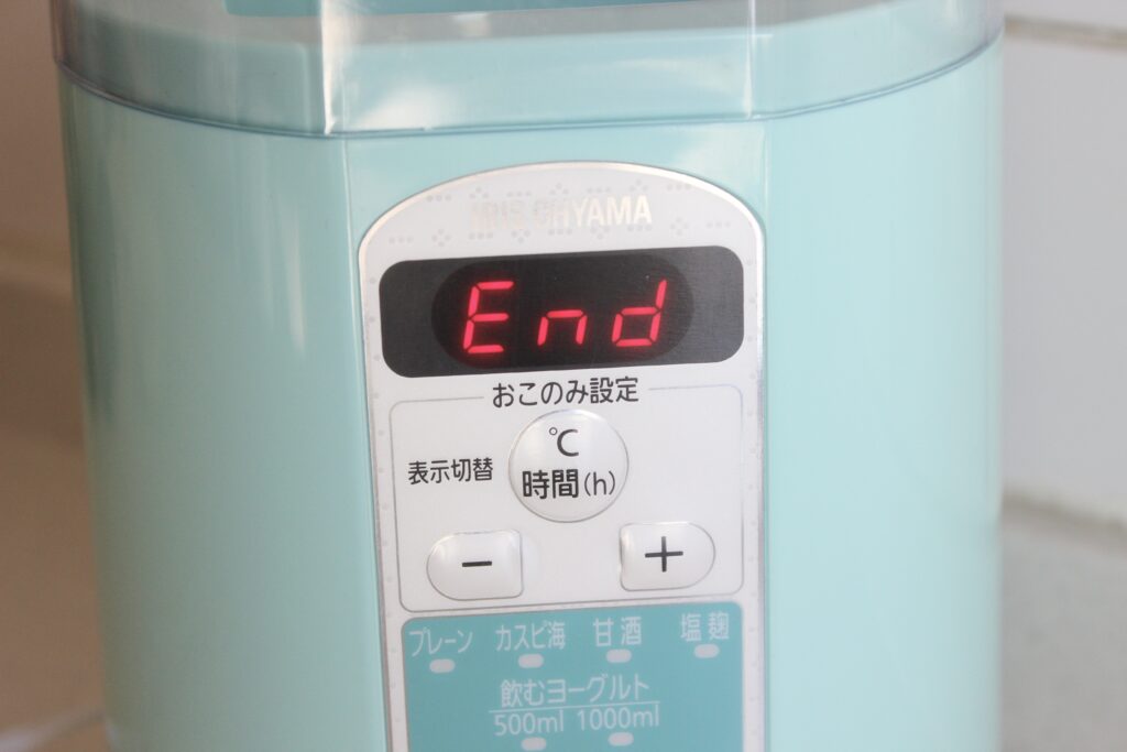 タイマーが終わるとピッピーと音と共に”end”が表示されます。