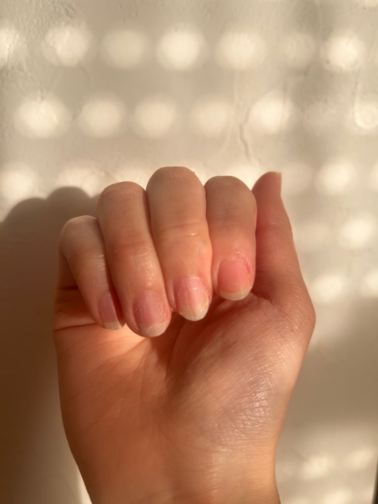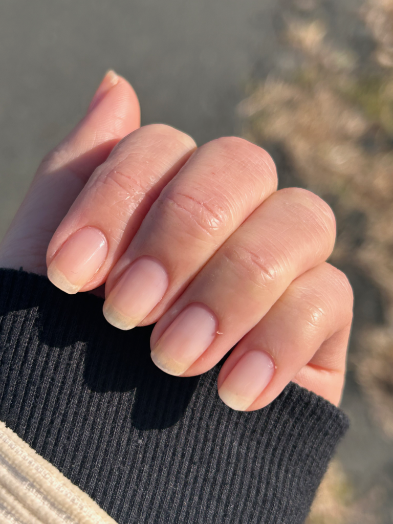 そこから、OPIのネイルエンビーを毎日塗りケアをしたら表面のボロボロも治り、綺麗に爪が伸びました。