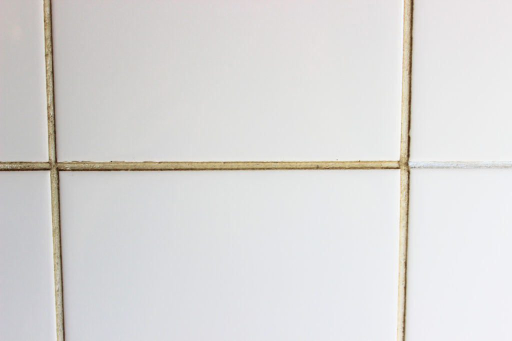 以前、キッチンで写真を撮った時にタイルメジの汚さに驚きました。